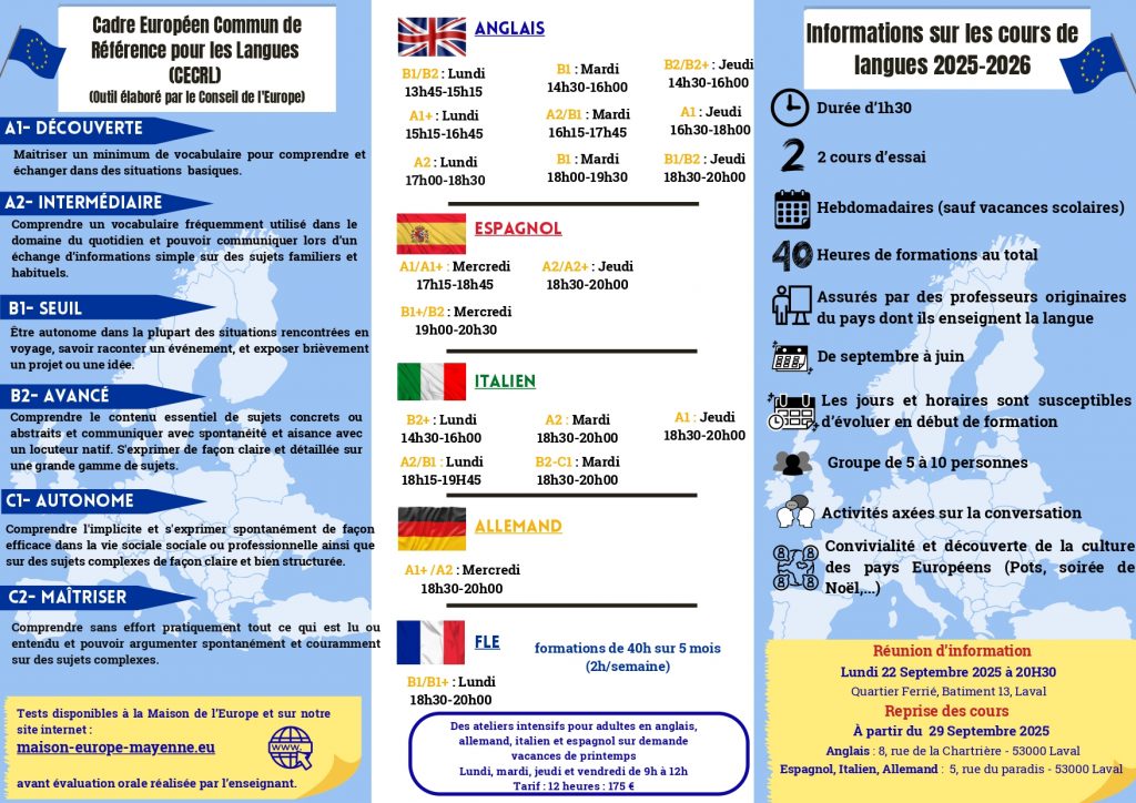 Fiche formation : Une fiche formation sur nos cours de langues est disponible en cliquant ici : Fiche formation 2025